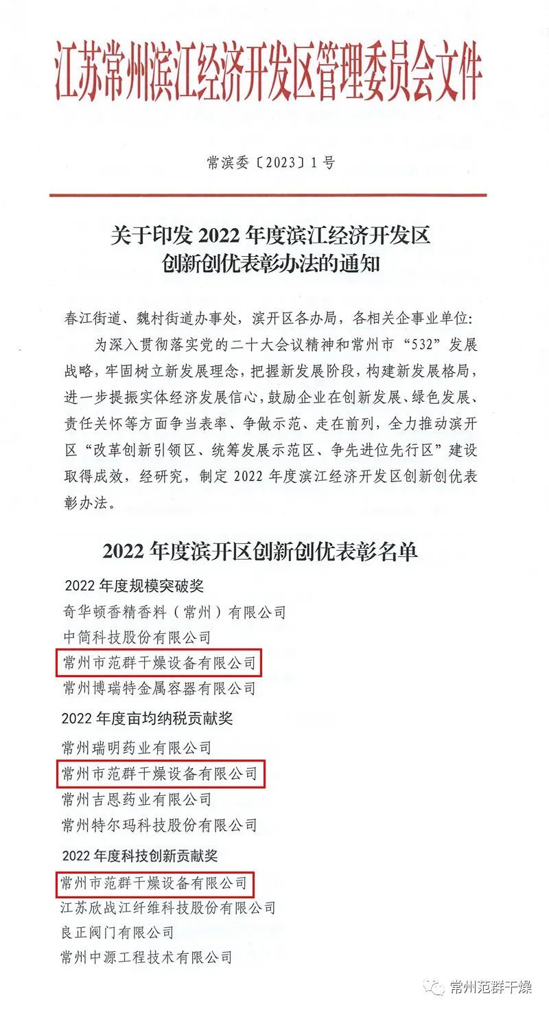 为全面贯彻落实党的二十大精神和中央、省委经济工作会议及市区两会精神,充分发挥滨开区“争第一、创唯一、勇当一流”的标杆引领作用,1月11日,“春已至 共WE来” —滨开区2023年中外企业迎新联谊会召开。常州范群荣获2022年度”规模突破奖““亩均纳税贡献奖”“科技创新贡献奖”。